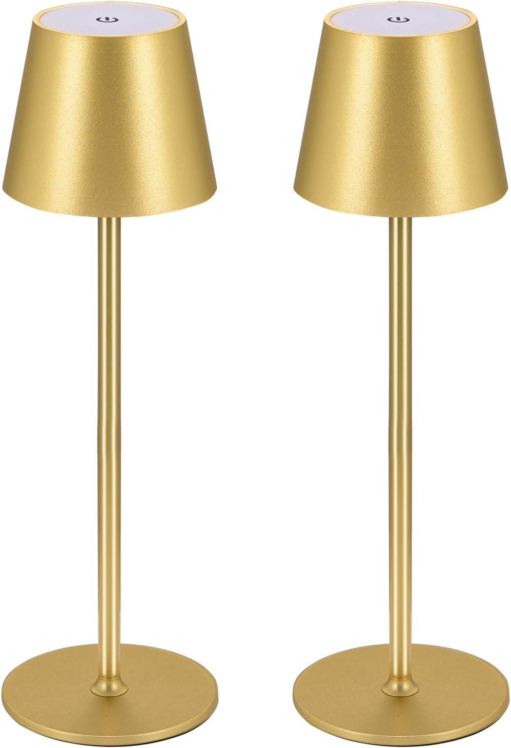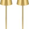 2 Stück LED Dimmbare Akku Tischlampe Kabellose, Wiederaufladbar Warme Lichtfarbe 3000K Tischleuchte Für Innen und Aussen mit USB-C, Aluminium, IP54 Wasserdichte (golden) [Energieklasse A+]