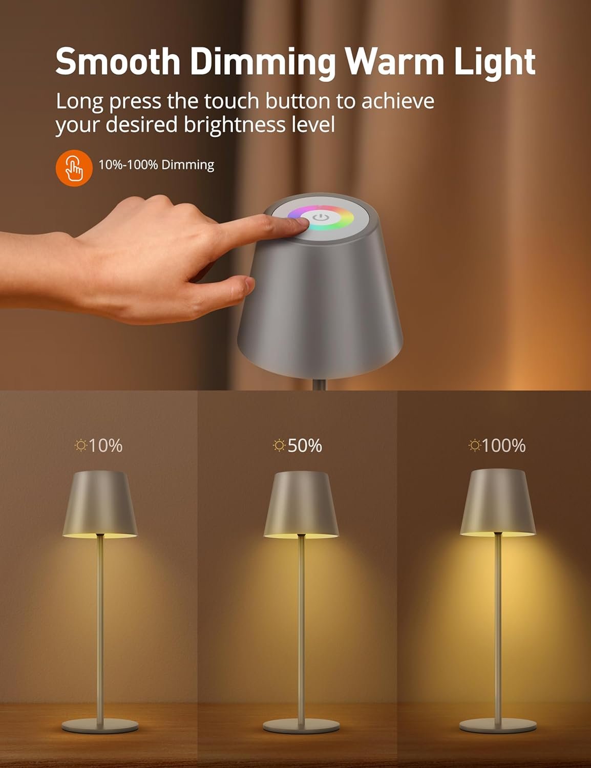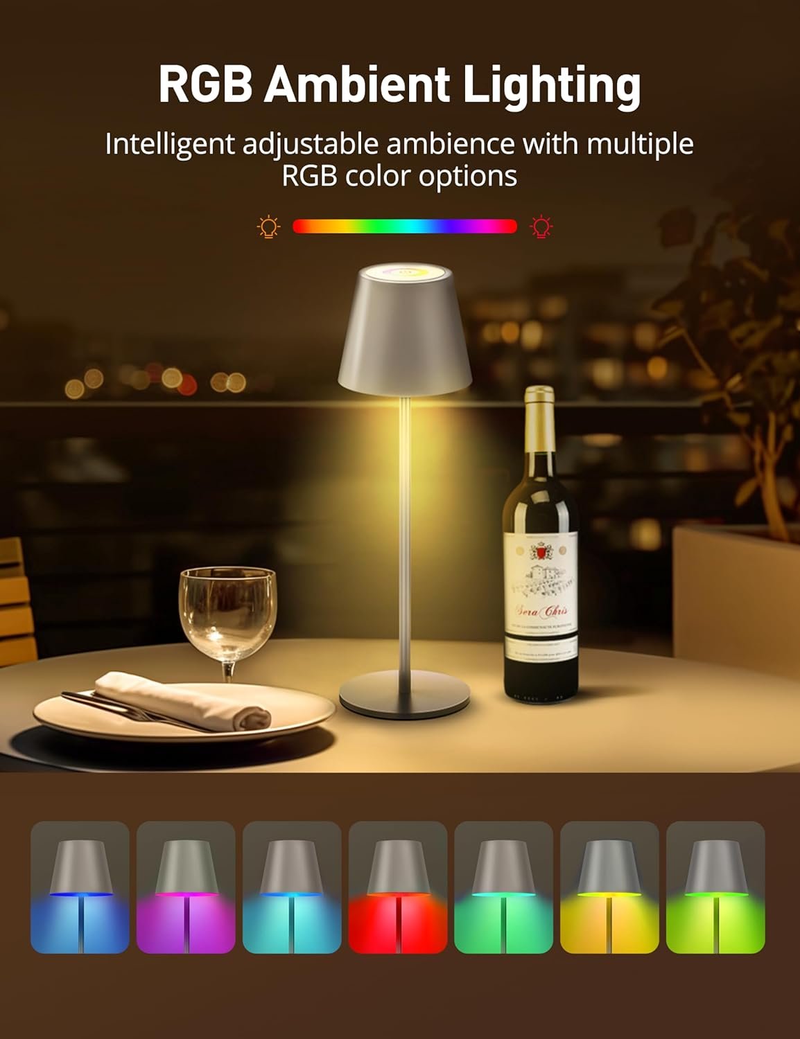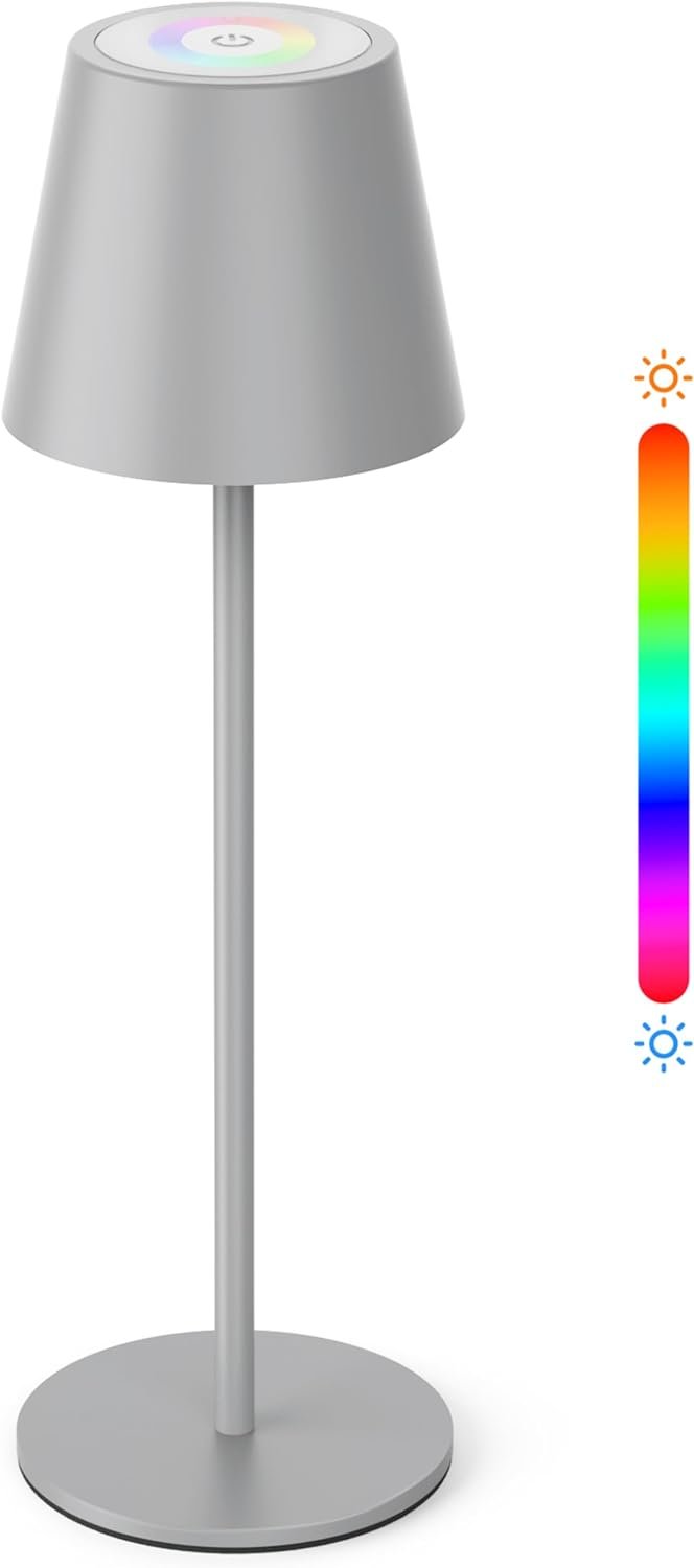 LED Tischleuchte Kabellos, Nachttischlampe Dimmbare mit 7 Farben RGB-Modus, Akku Tischlampe Aufladbar für Innen und Außen, LED Tischlampe IP54 Wasserdicht für Restaurant, Schlafzimmer, Bar, Grau