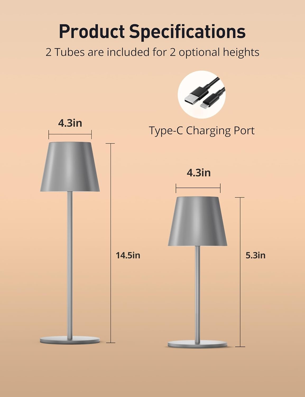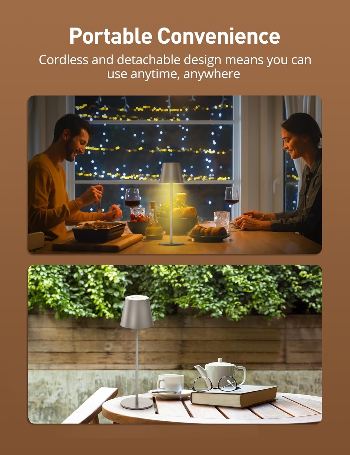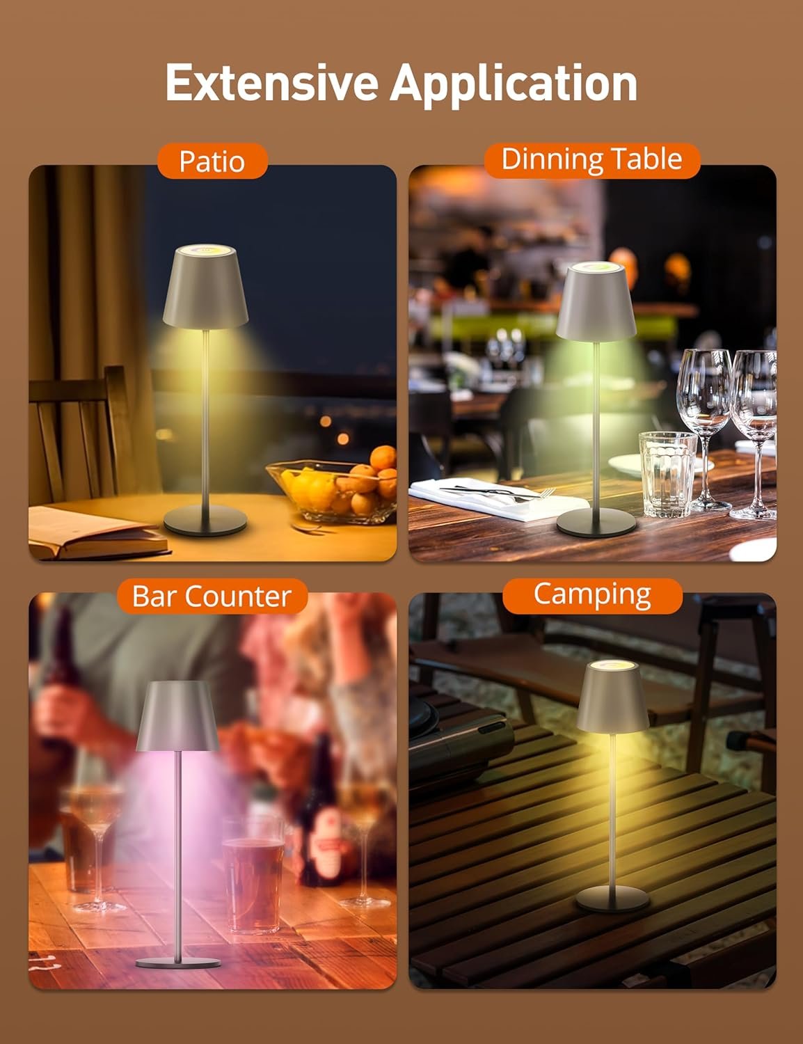 LED Tischleuchte Kabellos, Nachttischlampe Dimmbare mit 7 Farben RGB-Modus, Akku Tischlampe Aufladbar für Innen und Außen, LED Tischlampe IP54 Wasserdicht für Restaurant, Schlafzimmer, Bar, Grau